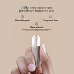 Our tampons are made with 100% GOTS certified organic cotton and contain no synthetic fibres, fragrances or harsh chemicals. Unlike many mainstream brands that often use rayon, polyester or artificial absorbents.
