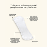 Our Organic Cotton wingless Pantyliners are made with two layers of woven 100% GOTS certified organic cotton to absorb naturally and comfortably — with no synthetic absorbents or superabsorbent polymers (SAPs). Designed to be slim yet reliable, they’re naturally leak-proof to keep you feeling fresh all day.